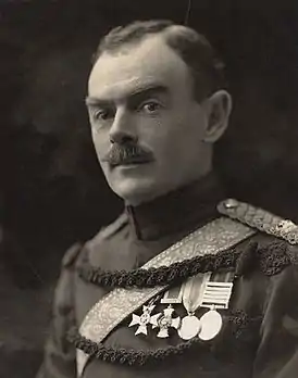 Вступил в Милицию[1]. Во время службы в 3-м батальоне Королевского Сассекского полка с 23 октября 1895 года служил адъютантом фельдмаршала лорда Робертса, командующего силами в Ирландии[3], а с 23 декабря 1899 года по 2 января 1901 года — адъютантом его же, но уже как главнокомандующего войсками в Южной Африке[4][1]. 15 августа 1900 года был переведён в 1-й батальон Ирландских гвардейцев[5][1]. 6 октября 1900 года повышен в звании до лейтенанта[6]. 19 февраля 1901 года повышен в звании до капитана[7]. С февраля по май 1900 года принимал участие в боевых операциях в Оранжевом Свободном Государстве, в том числе в сражении при Пардеберге (17—26 февраля), а также в битве при тополиной роще и Дрифонтейне[1]. За участие в войне был награждён медалью королевы за Южную Африку с пятью пряжками[1]. 16 апреля 1901 года был упомянут в донесениях[8]. 19 апреля был удостоен Ордена «За выдающиеся заслуги» степени компаньона «за заслуги во время кампании в Южной Африке, 1899—1900»[9][10]. Знак отличия был вручён лично королём 3 июня того же года[1].