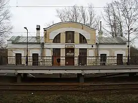 На станции имеются две боковые платформы. Возле платформы на Санкт-Петербург расположено здание вокзала.