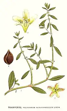 - Спорыш, растен. воробьины-язычки, мурава, Corrigiola littoralis; || растен. Herniaria glabra, остудник, кильник, грыжник, бахромчатая трава; || растен. Perlis portula; || растен. Polugonum, см. брылена.[6]