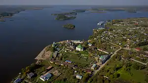 Расположен на берегу реки Шексны, в 7 км от Кирилло-Белозерского монастыря. Памятник архитектуры федерального значения.