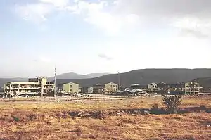 ![]() Грузинская военная база в Гори, уничтоженная российскими войсками | |||