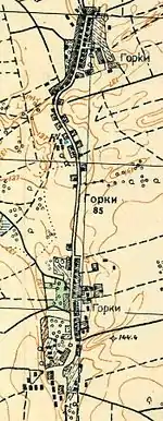 Согласно топографической карте 1931 года общая деревня Горки насчитывала 85 дворов.