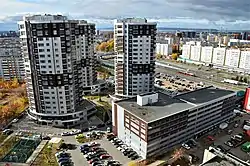 ![]() Вид на Горки-1 с высоты жилого комплекса «Олимп» (октябрь 2018) | |
