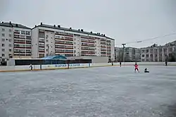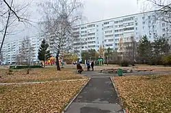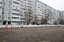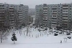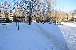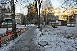 Один из дворов в 1-м микрорайоне (Горки-1), когда-то называвшихся «квадратом» (декабрь 2018)