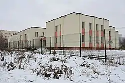 Вид на Горки-3 и жилой комплекс «Экопарк «Дубрава». На переднем плане — Дом ребёнка в микрорайоне 7А (май 2019)