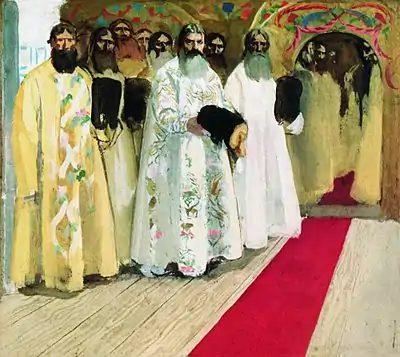 А. П. Рябушкин. Ожидают выхода царя (1901) - эскиз. Государственная Третьяковская галерея, Москва.