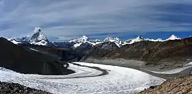 ![]() Вид с Монте-Роза на ледник и Маттерхорн | |