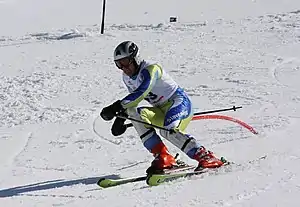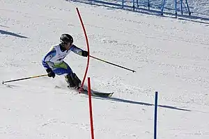 Словенец Данило Клинар на дистанции слалома