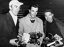 Призёры в слаломе, слева направо: Солландер, Зайлер, Игая