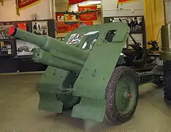 - 76-мм горная пушка образца 1938 года. Была разработана в 1938 году в конструкторском бюро под руководством Л. И. Горлицкого на основе 75-мм пушки C-5 фирмы Škoda. Принята на вооружение в мае 1939 года. Поступала на вооружение артиллерийских батарей горнострелковых полков и горно-артиллерийских полков и дивизионов горнострелковых и горно-кавалерийских дивизий. На 1 июня 1941 года в войсках имелось около 800 орудий, из них — 234 орудия в западных приграничных округах. С 1944 года пушки входили в состав смешанных горно-артиллерийских дивизионов горнострелковых бригад[19].