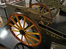 - 76-мм горная пушка образца 1909 года. Была разработана фирмой Schneider в 1905 году. Выиграв конкурс, 26 февраля 1909 года поступила на вооружении русской армии. К 1 ноября 1936 года в частях РККА состояло 622 пушки, из которых исправными были 572 орудия. Пушка выпускалась до 1939 года. На 22 июня 1941 года на вооружении РККА состояла 1121 горная пушка образца 1909 года. Использовалась в горнострелковых и горно-кавалерийских соединениях. Иногда их использовали вместо полковых орудий[19].