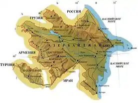 Рельеф Азербайджана очень разнообразен и сложен. Большую часть республики занимают горные хребты, луга и плато, остальная часть состоит из равнин и низменностей.[1] Горные хребты Азербайджана являются частью системы Большого Кавказа на севере республики и Малого Кавказа на западе и юго-западе.