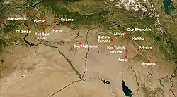 | Карана / Замаха (Karanā / Zamaḫâ) | Телль-эр-Римах (Tall al-Rimāḥ) | 36°15,58′ с. ш. 42°27,21′ в. д. | ||