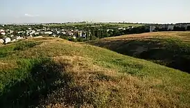 В 1967 году неподалеку городища археологи раскопали курган, который скифы насыпали на границе II—I века до эры. Оказалось, что это позднескифское захоронения эпохи бронзы с 5 склепами (овальной формы 1,70*2 метра и 1,40*1,80 метров) и коллективными захоронениями рядом них. К каждому своду вел дромос (длинный коридор, заложенный камнем). В погребальных камерах было 4-8 человек с инвентарем — глиняная посуда-бальзамарии, железные и бронзовые пряжки, железные ножи и стрелы), на одном из погребенных были остатки кожаной обуви.