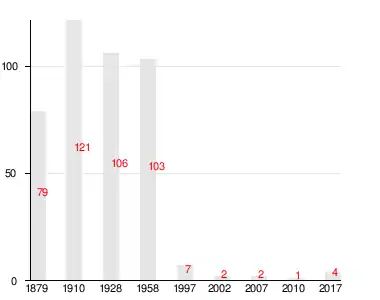 Число жителей по семейным спискам 1879 г.: 42 м. п., 37 ж. п.; по приходским сведениям 1879 г.: 41 м. п., 44 ж. п.[5]