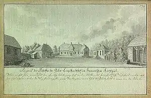 - Мыза Ладенхоф (нем. Ladenhof, ранее Namküll, латыш. Lādes muiža) — Лимбажский приход; в 1816 году размер мызы 9 и 3/8 сохи, в подчинении 355 душ мужского пола и 413 душ женского пола[29].