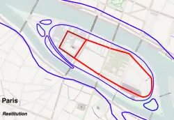 - три средневековых, включая стену X века, стену Филиппа Августа (фр. enceinte de Philippe Auguste; возведена на правом берегу в 1190—1209 гг. и на левом берегу в 1200—1215 гг.) и стену Карла V (фр. enceinte de Charles V; возведена в 1356—1383 гг.),