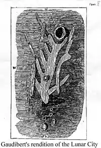 В литературных произведениях середины XIX века можно найти описание «города» и рассказы о том возбуждении, которое вызвало это открытие в умах, богатых воображением.[29] Так, например, полагают, будто знаменитый эпизод из романа Жюля Верна «Вокруг Луны», в котором Ардан видит нечто напоминающее «руины города или крепости», навеян сообщением Груйтуйзена[30].