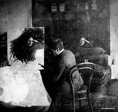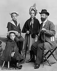 | Семён Петрович Чоколов, конец XIX — начало XX века. | Сергей Чоколов (сидит), Дмитрий, Наталья и Семён Петрович Чоколов, 1897. | В. А. Серов пишет портрет Екатерины Николаевны Чоколовой, 1887. |