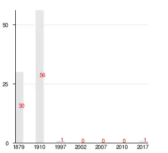 Число жителей по семейным спискам 1879 г.: 13 м. п., 17 ж. п.; по приходским сведениям 1879 г.: 12 м. п., 18 ж. п[2].
