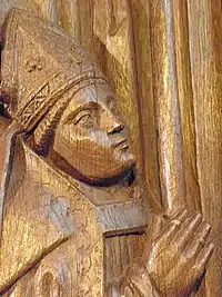 ![]() Изображение на церковной скамье в соборе Богоматери Благовещения в Бурк-ан-Бресе | ||