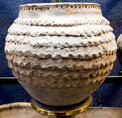 Горшо́к — собирательное название разнообразных, обычно низких устойчивых, керамических сосудов с широким горлом. Предназначен для готовки и хранения пищи[1]. Размеры горшков разного назначения различны: от небольших на 200—300 г до 2—3-ведёрных. Форма хорошо подходит для русской печи[2]. Чаще они не имели орнамента или украшались круговыми прямыми или волнистыми полосками, а также рядами ямочек вокруг венчика и на плечиках. Использовалась и свинцовая глазурь (полива).