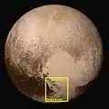![]() Горы Хиллари, вид с пролетающего зонда Новые горизонты, 14 июля 2015 года | |