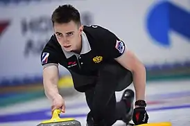 ![]() Даниил Горячев на Арктическом кубке по кёрлингу 2018 года в Дудинке | |
