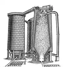 В 1834 году Вильям Фабер дю Фаур предложил использовать тепло от дожигания отходящих доменных газов. Тогда же английские металлурги впервые попробовали подогревать воздух, используя тепло самой домны[8]. В 1845 году Джеймс П. Бадд создал более практичный способ использования отходящих газов, разместив теплообменник наверху домны[9][10].