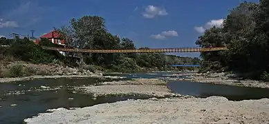 Старый висячий мост через реку Псекупс в Горячем Ключе, около мебельной фабрики
