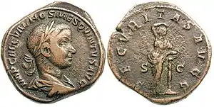 ![]() Сестерций с изображением Гостилиана | |