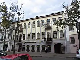 Здание построено в стиле эклектики с элементами классицизма и модерна. Оно трёхэтажное с полуподвалом, под двускатной крышей. Композиция фасада симметричная, центральную часть венчает треугольный фронтон. Оконные проёмы второго и третьего этажа лучковые, в наличниках. Балконные решётки чугунные, ажурные[1][2].