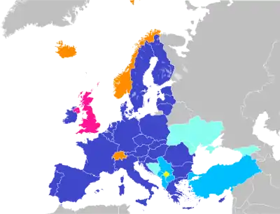 (выделены: жирным — официальные кандидаты в члены, жирным курсивом — потенциальные кандидаты по текущей программе расширения):