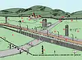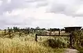 Вид на границу раннего типа. Деревянные укрепление и сторожевые вышки. 1961 год.