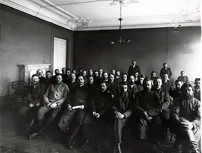 - по роду занятий: 169 крестьян, 32 рабочих, 20 священников, 25 земских городских и дворянских служащих, 10 мелких частных служащих, 1 поэт, 24 чиновника (в том числе 8 из судебного ведомства), 3 офицера, 10 профессоров и приват-доцентов, 28 других преподавателей, 19 журналистов, 33 юриста (адвокатура), 17 коммерсантов, 57 землевладельцев-дворян, 6 промышленников и директоров заводов.