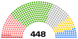 Всего было избрано 497 депутатов из них избрание 11 депутатов было аннулировано, 1 ушёл в отставку, 1 умер, 6 не успели приехать.