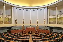 Правительство несёт ответственность перед парламентом — Эдускунтой. В соответствии с Конституцией Финляндии, высшая государственная власть принадлежит Эдускунте, которая принимает законы, утверждает государственный бюджет и избирается гражданами Финляндии на основе парламентских выборов.[2]