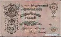 25 рублей образца 1909 года (выпуск 1909—1918 годов)