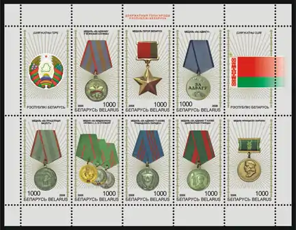- Государственные награды на почтовых марках Республики Беларусь. Почта Беларуси. Дата обращения: 11 сентября 2010. Архивировано 27 апреля 2012 года.