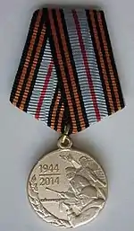 Медаль «70 лет освобождения Республики Беларусь от немецко-фашистских захватчиков» | 10 января 2014 года[25] | В память об освобождении Белоруссии от фашистской Германии | Ветераны, военнослужащие СССР, партизаны, участники подполья, иные участники войны |