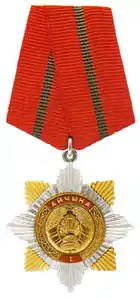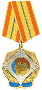 Орден Трудовой Славы | 28 апреля 2015 года[5] | 1. За особые достижения в промышленности, сельском хозяйстве, строительстве, на транспорте, в сфере обслуживания; 2. за выдающиеся заслуги в области культуры, литературы, искусства, образования, медицины, научно-исследовательской деятельности и других областях трудовой деятельности; 3. за самоотверженный высокопроизводительный труд, изготовление продукции высокого качества, внедрение в производство новой техники, технологии, передового опыта, особо ценные изобретения и рационализаторские предложения; 4. за особые заслуги в области государственной и общественной деятельности, в укреплении законности, правопорядка и обороноспособности страны. |