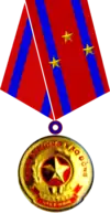- Медали - награждаются должностные лица, профессиональные военные, оборонные работники, работники учреждений и подразделений Народной армии, должностные лица и профессиональные внештатные сотрудники Народной полиции, иностранцы, сделавшие вклад в дело национального строительства и обороны.