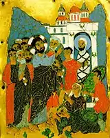 Воскрешение Лазаря, грузинская перегородчатая эмаль, XII век