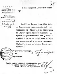 - Организация науки в первые годы Советской власти (1917—1925) (Сборник документов) / Отв. ред. К. В. Островитянов. — Л.: «Наука», 1968. — С. 142—150. — 420 с. — 2100 экз.