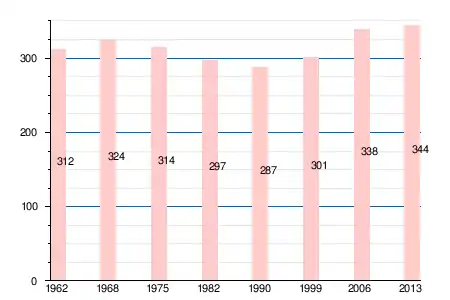 Население коммуны в 2011 году составляло 345 человек[6], в 2012 году — 344 человека[7], а в 2013-м — 344 человека[5].