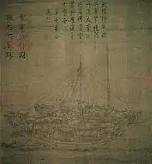 - 2. Башня Юэян: лодка на реке и строения на дальнем берегу. Приписывается. Прекрасная позднее-сунская или ранне-юаньская работа. Наньцзин, Музей