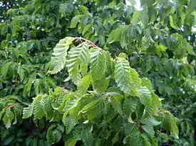 Листорасположение двурядное, очерёдное. Почки сидячие, острые, покрыты чешуйками. Листья простые, опадающие, длиной 3—10 см, эллиптические или овальные, дважды зубчатые, с параллельно-перистым жилкованием, в почке складчатые, с опадающими прилистниками.