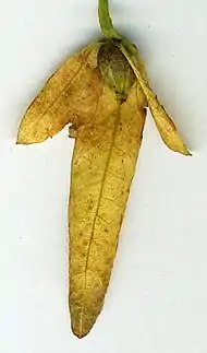 Слева направо: Нижняя часть взрослого дерева. Лист. Мужское соцветие. Семя. Декоративная форма. | ||||||||||