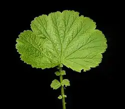 Слева направо: лист и прилистники, побег с листьями и цветками, цветок крупным планом | ||||||||||