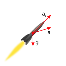 Ускорение ракеты складывается из ускорения, приобретаемого двигателем и ускорения свободного падения: